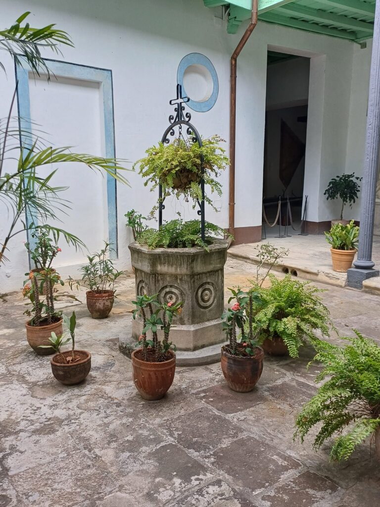 - Patio interior con pozo, rodeado de azulejos valencianos y baldosas hidráulicas cubanas del siglo XIX